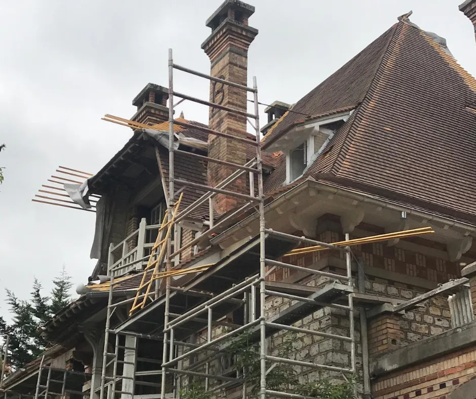 Nos chantiers incluent maçonnerie, toiture, façade et finitions.
